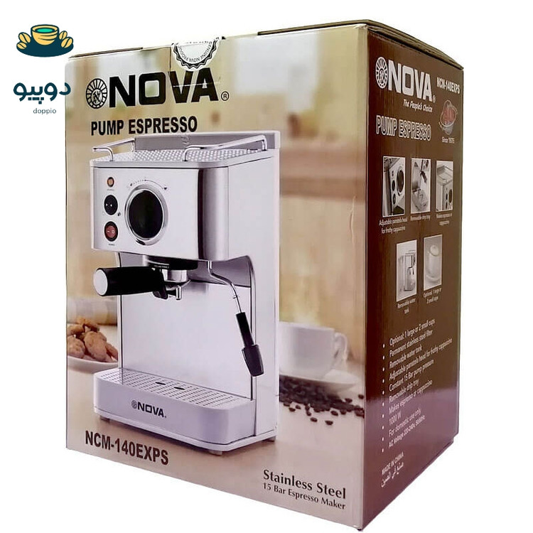 اسپرسو ساز نوا 140 محصولی از شرکت NOVA چین می باشد. این دستگاه دارای قدرت 1000 وات بوده و برای مصارف خانگی و برخی از کافی شاپ های کوچک مورد استفاده قرار می گیرد. وزن دستگاه 5.5 کیلوگرم بوده و جنس بدنه اسپرسو ساز از استیل ضد زنگ می باشد.